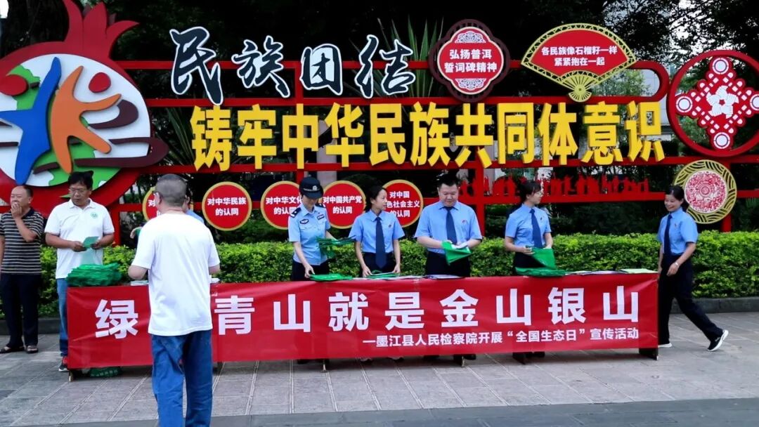 8月15日,墨江县人民检察院联合县发改局、县生态环境局等部门开展生态文明宣传活动,倡导人民群众积极参与到保护生态环境中来。