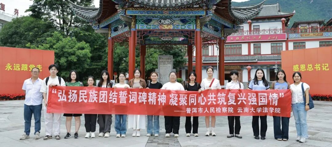 在习近平总书记给普洱民族团结誓词碑盟誓代表后代回信一周年到来之际,为深入贯彻习近平总书记给普洱民族团结誓词碑盟誓代表后代回信的重要精神,铸牢中华民族共同体意识,进一步推进检校合作深入发展,近日,普洱市人民检察院组织云南大学法学院到我院实习的学生前往宁洱县民族团结园开展“弘扬民族团结誓词碑精神 凝聚同心共筑复兴强国情”主题教育活动,同学们在“行走的课堂”中感悟革命精神,传承红色基因。 活动现场,大家重温了“民族团结誓词碑”的历史,深刻领会“各民族像石榴籽一样紧紧抱在一起”的深刻内涵,进一步增强了维护民族团结、铸牢中华民族共同体意识的责任感和使命感。随后,走进茶马古道上的那柯里村,在古驿站的历史遗迹与现代乡村振兴的生动实践中,见证民族团结誓词碑精神的时代传承。 此次爱国主义教育实践研学活动,以边疆红色地区资源为纽带,将民族团结课堂从书本延伸到历史现场和社会实践中,让实习生在沉浸式体验中深化理论认知,深刻领会民族团结精神的伟大力量。他们纷纷表示,今后将牢记总书记嘱托,在学习与工作中积极传播民族团结理念,为促进社会和谐发展贡献自己的青春力量。
