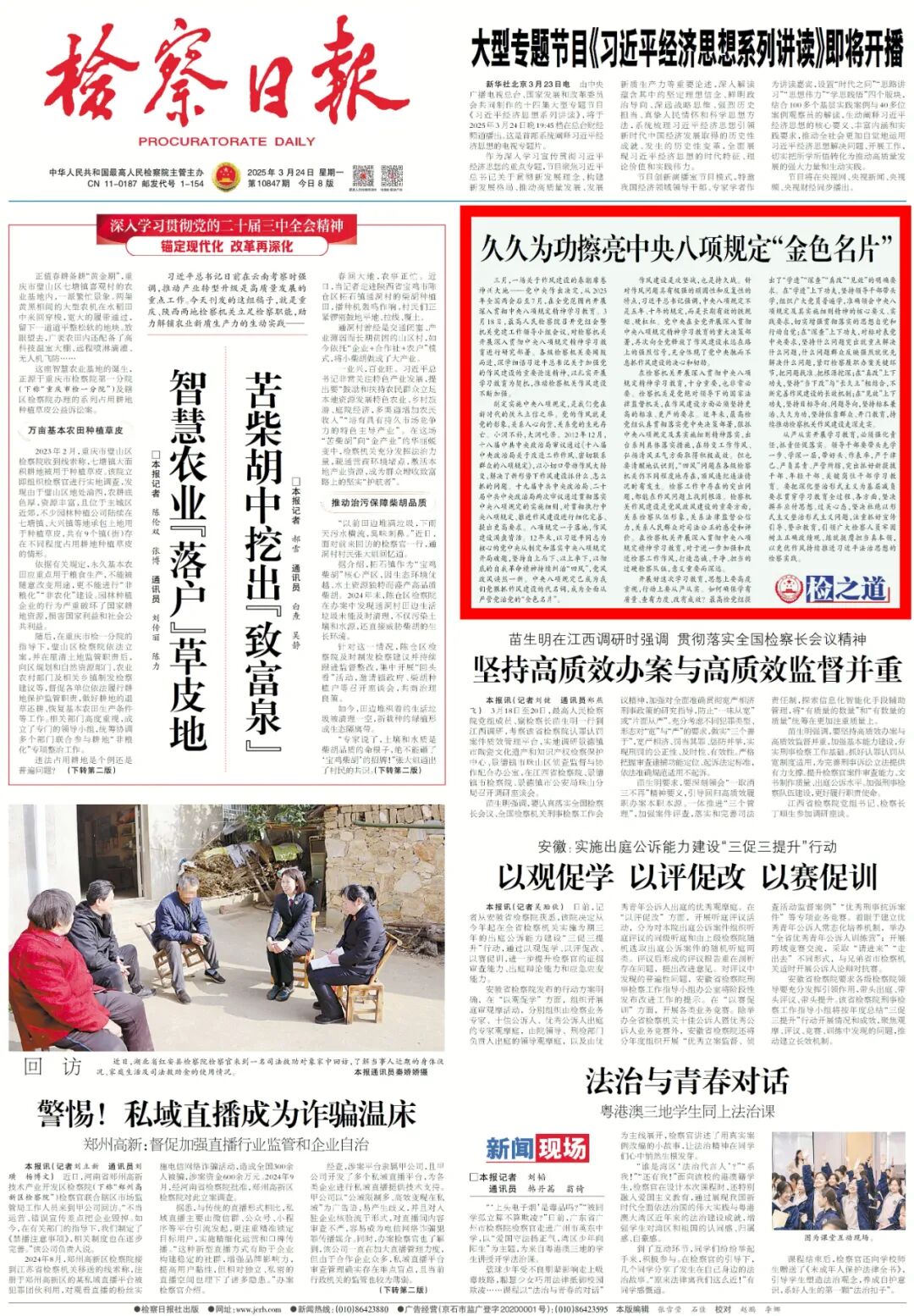 三月,一场关于作风建设的春潮席卷神州大地——党中央作出决定,从2025年全国两会后至7月,在全党范围内开展深入贯彻中央八项规定精神学习教育。3月18日,最高人民检察院召开党组会暨机关党建工作领导小组会议,对检察机关开展深入贯彻中央八项规定精神学习教育进行研究部署。各级检察机关要闻鼓而进,深学细悟习近平总书记关于加强党的作风建设的重要论述精神,以扎实开展学习教育为契机,推动检察机关作风建设不断加强。