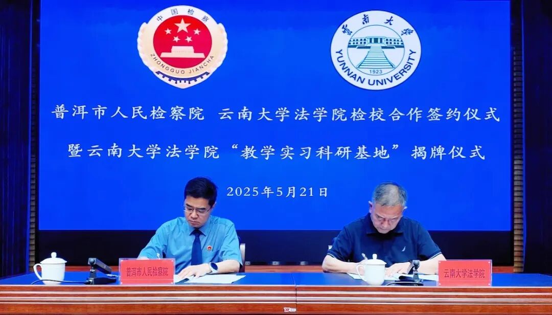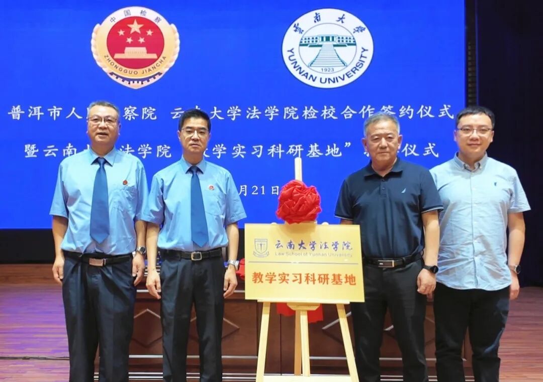 为深入学习贯彻习近平法治思想,认真落实《关于加强新时代法学教育和法学理论研究的意见》《关于加强新时代检察机关与高等学校合作的意见》等文件精神,推动检察机关与高等院校在资源、优势等方面实现共享互补、深度融合。5月21日上午,普洱市检察院与云南大学法学院举行检校合作签约仪式暨“教学实习科研基地”揭牌仪式。云南大学法学院诉讼法教研室主任程龙受邀为普洱市人民检察院、普洱市中级人民法院开展同堂培训。 仪式上,绪伟检察长激情洋溢地致辞,表示检校合作乃序章之始,深耕方见万里可期!“深化检校合作,共筑法治未来”这一主题不仅承载着我们对法治事业的共同追求,更蕴含着理论与实践同频共振的深刻内涵。双方的合作就是搭建了一个“资源共享、优势互补、协同创新”的平台,是法治人才培养的供给侧改革,也是实现法学理论与司法实务“双向奔赴”的重要契机,更是激活人才发展 “一池春水”、打造人才培养 “新地标”、破解社会治理难题的创新探索,真正实现了“培养法治人才、提升办案质效、服务社会治理”的多重价值。 绪伟检察长与陈云东院长 为云南大学法学院“教学科研实践基地” 揭牌 陈云东院长满怀热忱地致辞,并表示检校合作既是进一步深入贯彻落实习近平法治思想的生动实践,更是为一带一路检察实务与法学理论的发展协同培养法律人才提供了可行、有效的新模式和新路径。云南大学法学院将以此次签约为契机,坚持主动服务国家社会的战略需求,主动契合普洱市处于边疆地区的发展定位,以学术智慧助力推动司法工作科研成果转化,为司法机关精准输送更多契合岗位需求的高素质法治人才,让高校的“智力引擎”真正服务司法、服务社会。 普洱市人民检察院将以检校合作为重要抓手,构建 “理论 + 实践”“引进来 + 走出去” 的立体化培养体系,推动检察人员在政治素养、专业能力、实践水平上实现全方位提升,致力于构建从“理论滋养实践、实践反哺理论、人才驱动创新”的法治生态养成系统。 仪式后,程龙主任以《边疆少数民族地区司法机关涉外法治工作》为题,结合当前普洱边疆司法实践与犯罪预防趋势,以不同角度系统分析、答疑解惑,为大家送上了一份理论与实务相结合的学术大餐。 参训干警表示,程龙主任此次的授课内容,很实在、很细致,让我们深刻认识到涉外法治工作的重要性和复杂性,为边疆地区开展涉外法治工作注入了强劲动能,提供了破局思路与实践指南。